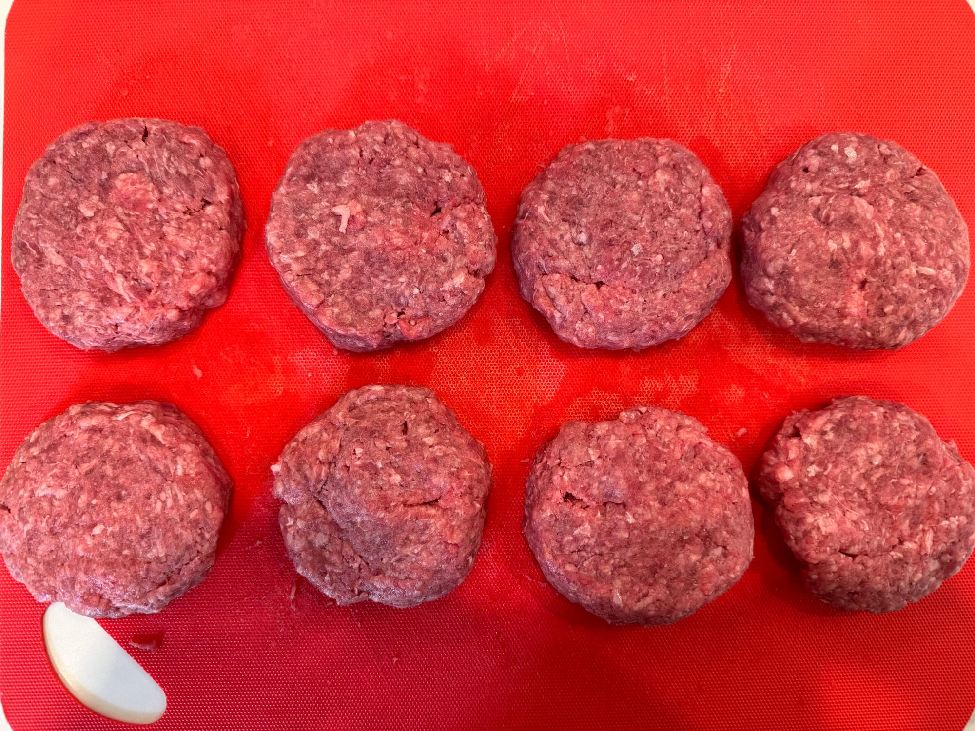 When you make smash burgers you want the patties pretty small. We use 3oz patties but you can go as small as 2oz. Make them kind of thick. Don't worry if they look small you are going to smash them which will make them bigger.