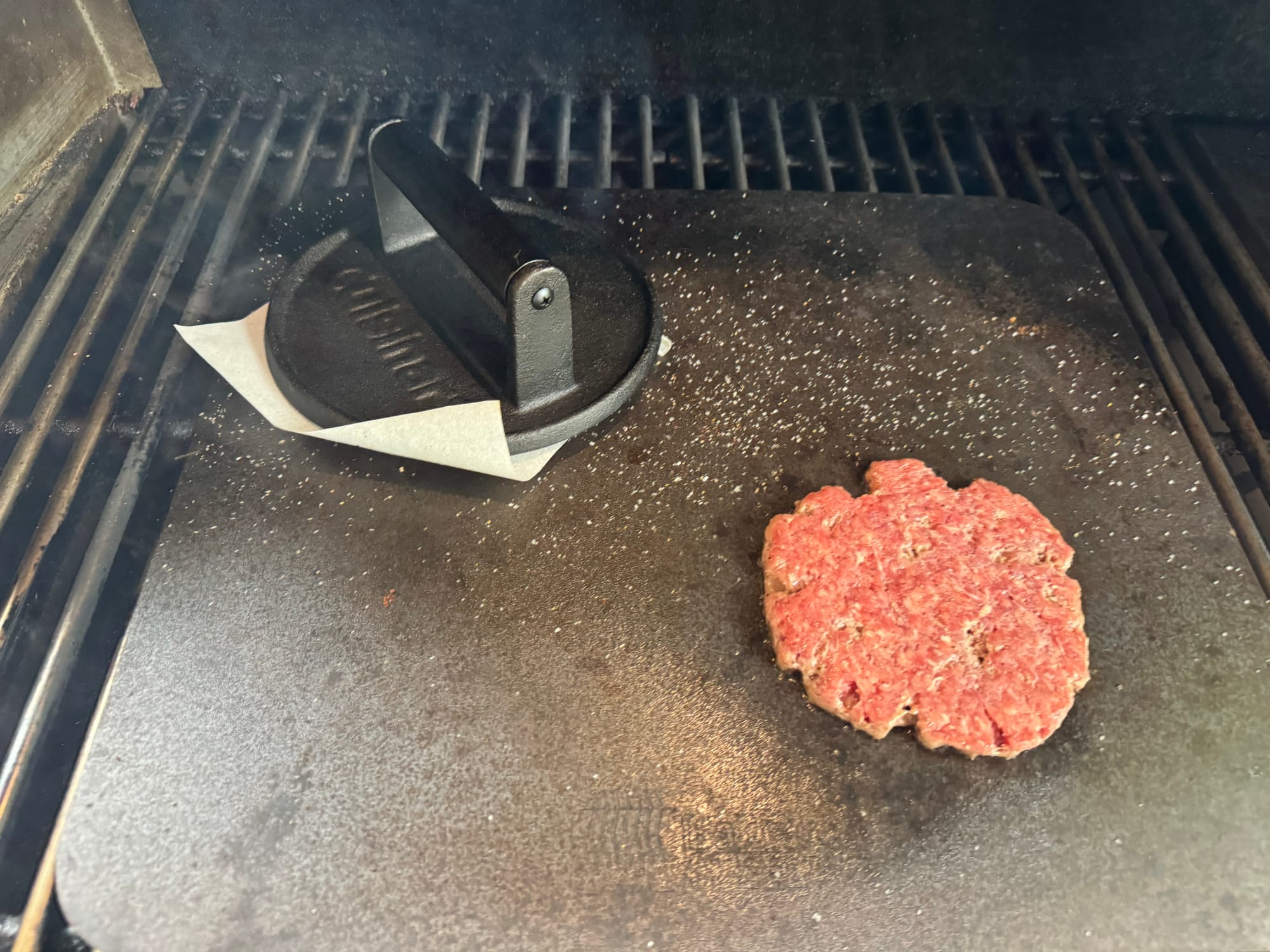 You can use something as simple as a pan, but we use a baking steel, which we put on our grill. The key is to get the surface very hot. Cooking smash burgers is very fast so be sure to have all your ingredients ready, and don't forget to smash the patties.