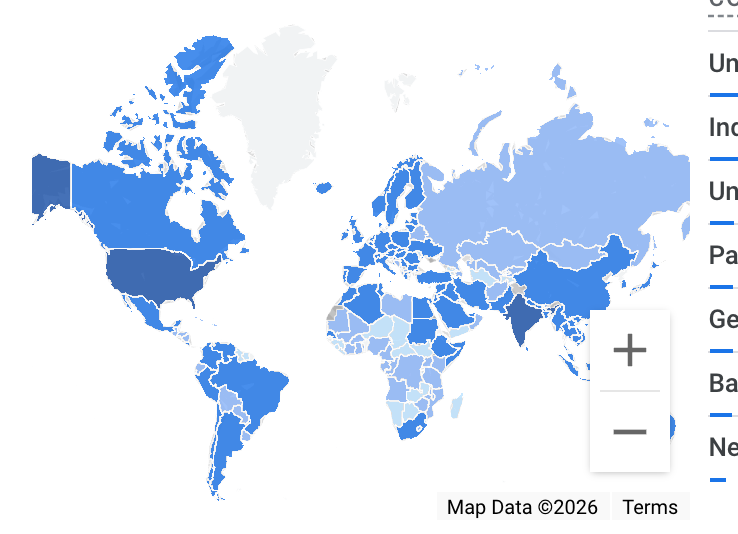 Also, all of those gray spots on the map are disputed territory. 204 countries, 304,000 views. All of those are good, but the next one is even better.